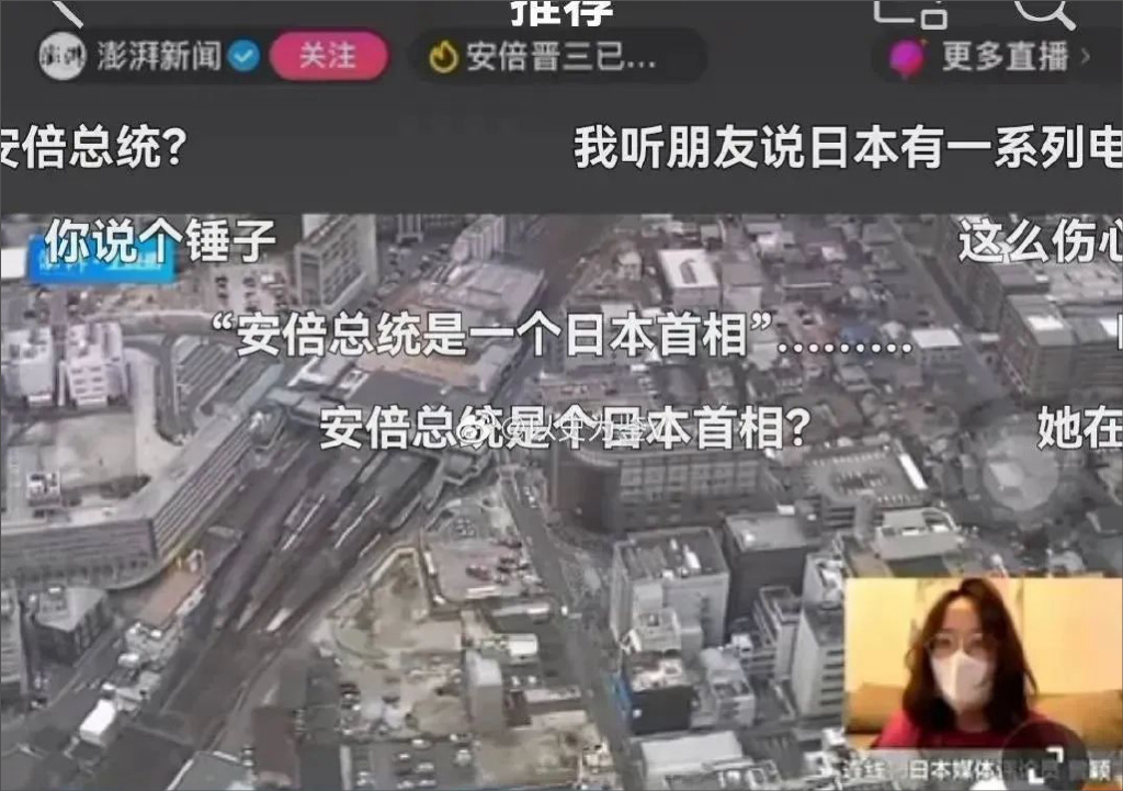 澎湃新闻驻日记者曾颖,在直播报道此事时,聊到安倍生前的“贡献”时,控制不住情绪,几度哽咽。