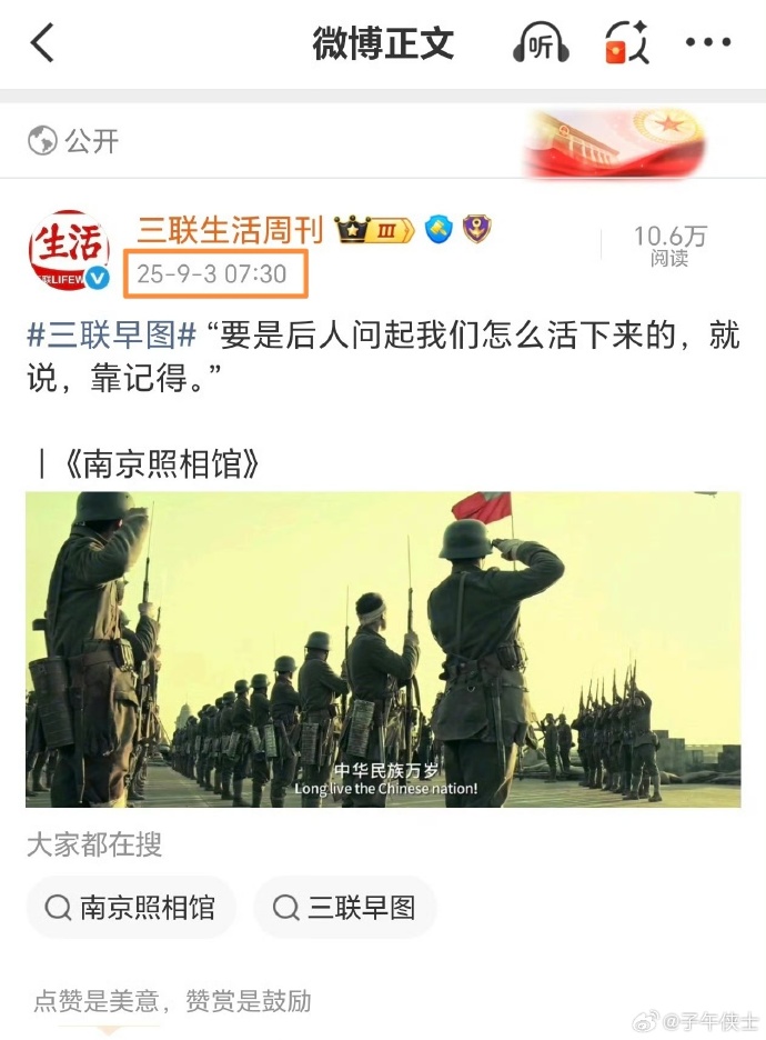 在中华民族的历史长河中,9 月 3 日是一个无比沉重且意义非凡的日子,它承载着中国人民浴血奋战换来的伟大胜利,是无数先烈用生命铸就的里程碑。然而,《三联生活周刊》却在这一天,以一种令人匪夷所思的方式,刺痛了国人的心。